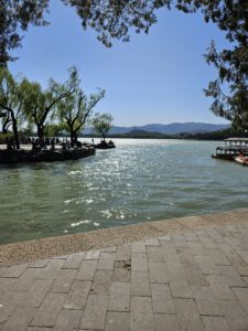 Das Programm am folgenden Tag war sehr umfangreich. Zuerst besuchten wir den Tian’anmen-Platz (Platz des Himmlischen Friedens). Dieser hat eine Fläche von 39,6 Hektar und gilt als der größte befestigte Platz der Welt. Danach ging es zur gegenüberliegenden Verbotenen Stadt. Dies war der Kaiserpalast, der seinen Namen trägt, da außer dem Kaiser niemand berechtigt war, den Palast frei zu betreten. Nach der Verbotenen Stadt besuchten wir den Sommerpalast, die Sommerresidenz des Kaisers. Diese ist von Natur umgeben und liegt am Kunming-See, was ihr ein sehr harmonisches Aussehen verleiht.