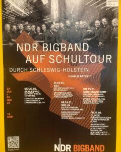 Das neue Jahr startet musikalisch: Im Januar 2024 führt die Schultour der NDR BigBand und deren Crew durch Schleswig-Holstein. Am 26. Januar besucht uns die NDR Bigband mit Workshops an unserer Schule. Das Konzert beginnen wir – das BigOrchestra des Gymnasiums Glinde – gemeinsam mit der Bigband der Gemeinschaftsschule Wiesenfeld. Nach einer Pause spielt die NDR BigBand.