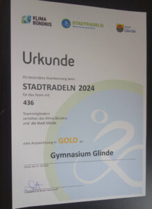 Das Gymnasium Glinde hatte sich mit 23.980 gefahrenen Kilometern aller Beteiligten beim STADTRADELN 2024 einen ersten Platz in der Kommune erobert!
