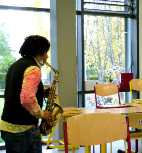 Eine weitere Frage: Du unterrichtest ja zurzeit an unserer Schule und gibst hier in Kooperation mit der Musikschule Glinde Saxophon-Unterricht für die Schüler*innen der Orchesterklasse. Wie läuft das ab?